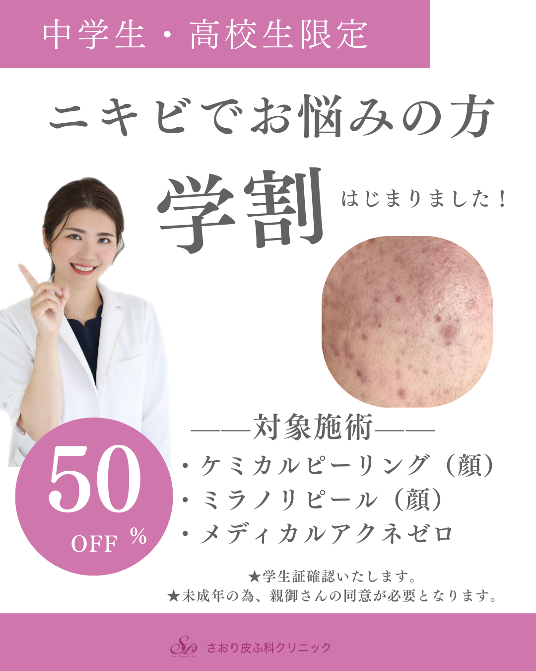 | ダウンタイム 副作用 | 個人差はありますが、ピーリング施術中のピリピリとした痛みを感じる方もいます。また、施術後には、一時的な赤み、皮むけ、痂疲形成、色素沈着、乾燥、ニキビの悪化が見られる場合があります。 ミラノリピールの施術後は、3~4日目から薄皮が剥がれはじめ、7~10日程度で落ち着きます。 |